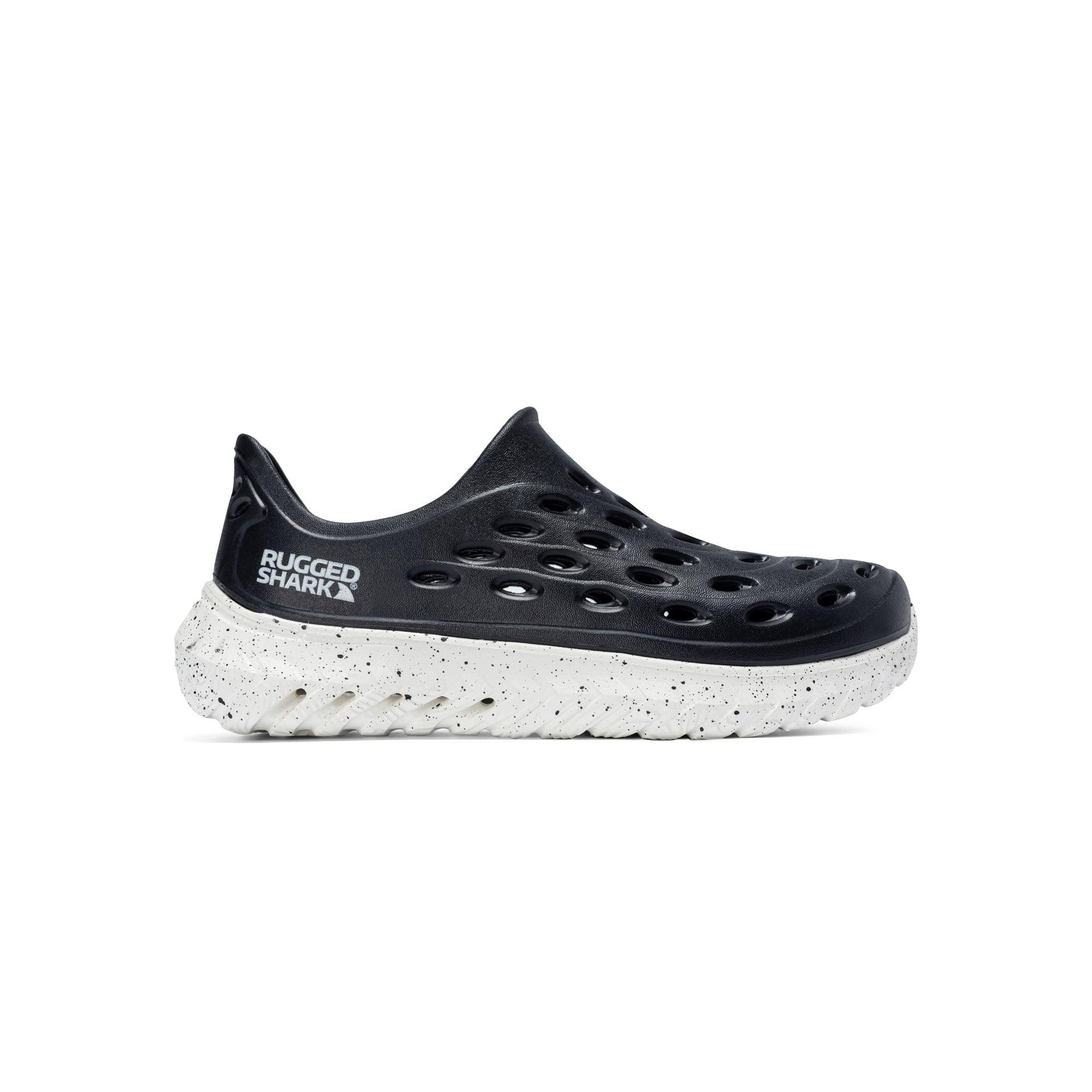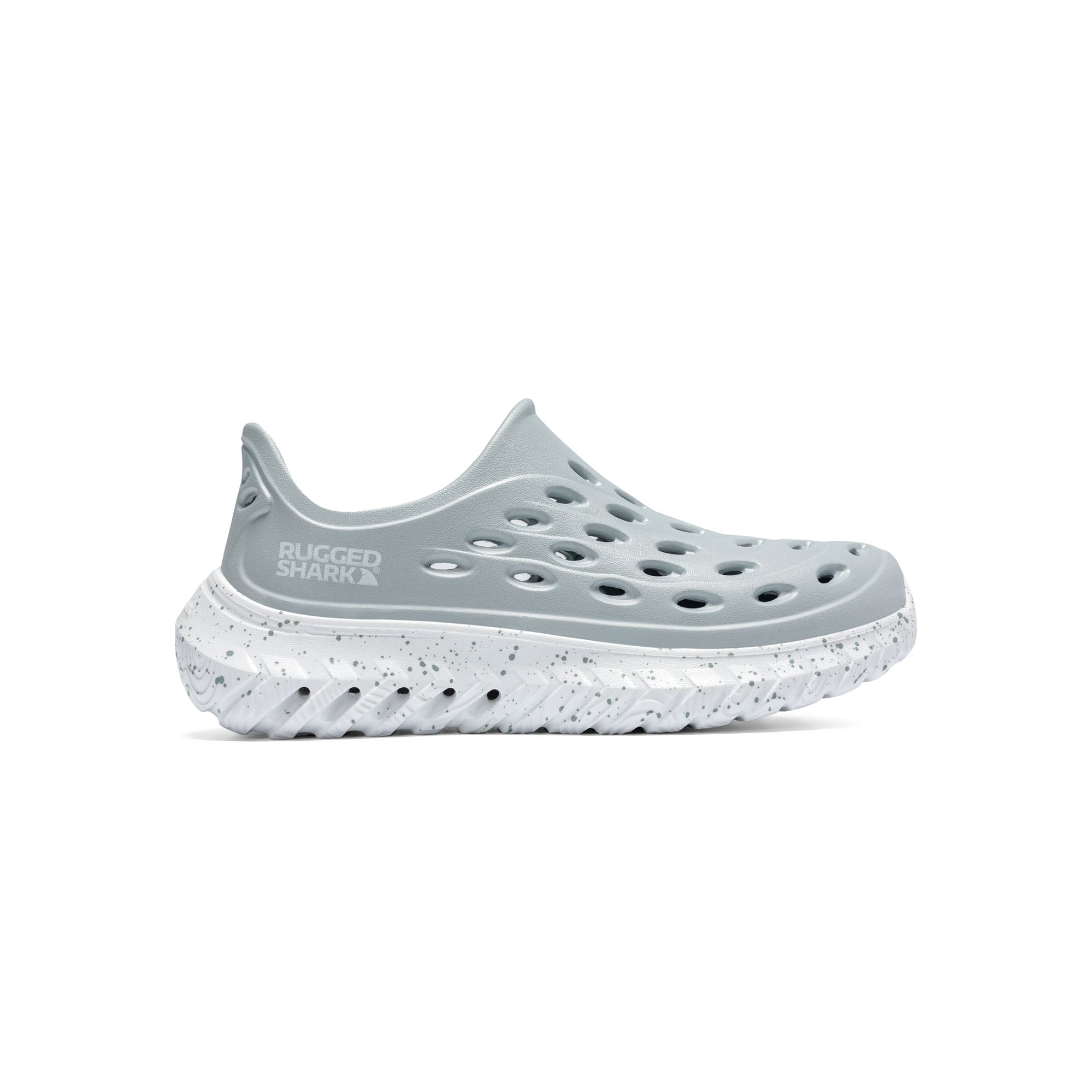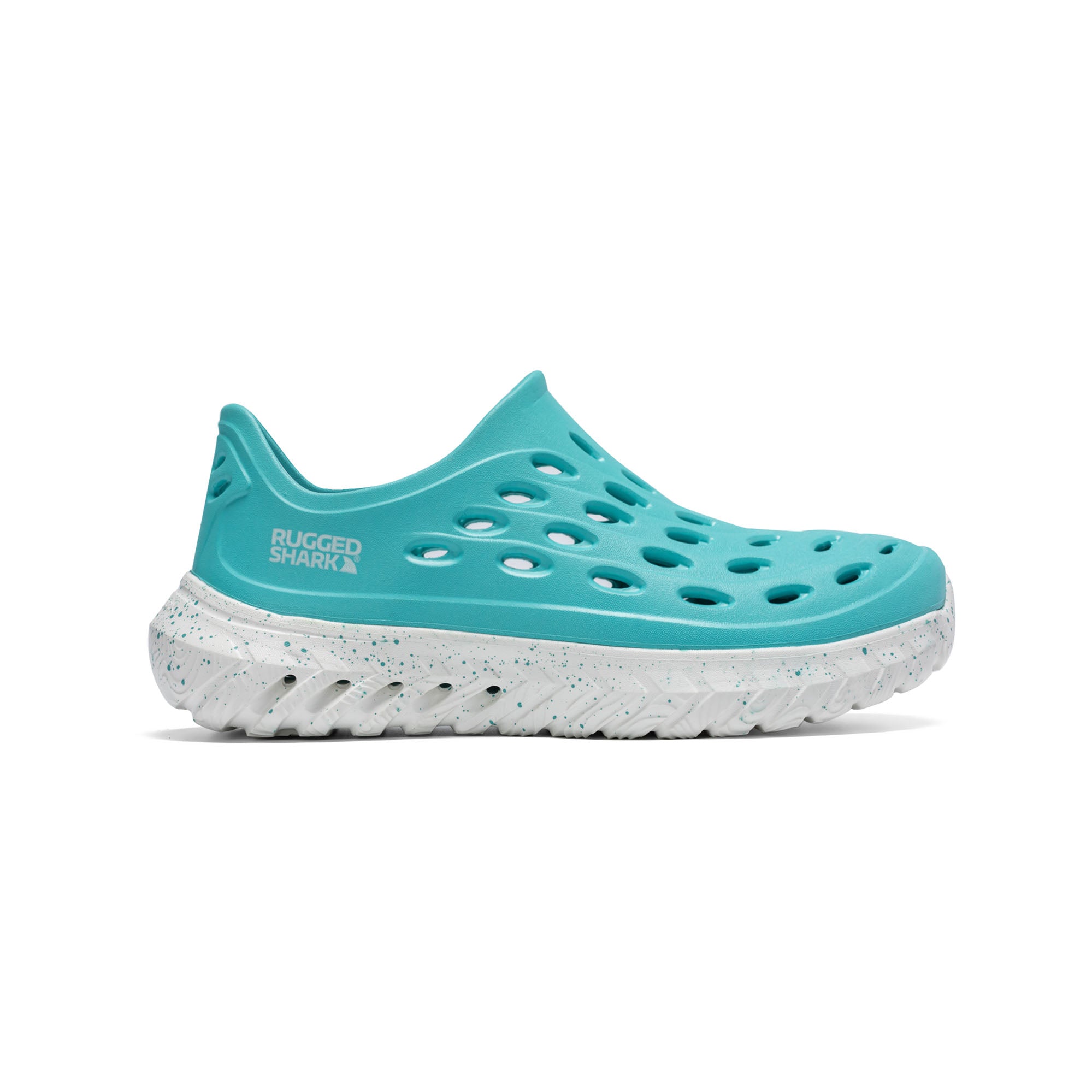 The Rugged Shark Rift slip-ons are perfect for both water and recovery, featuring quick-drying, lightweight EVA construction, a textured footbed, and AQUAFLO® Drainage Technology.