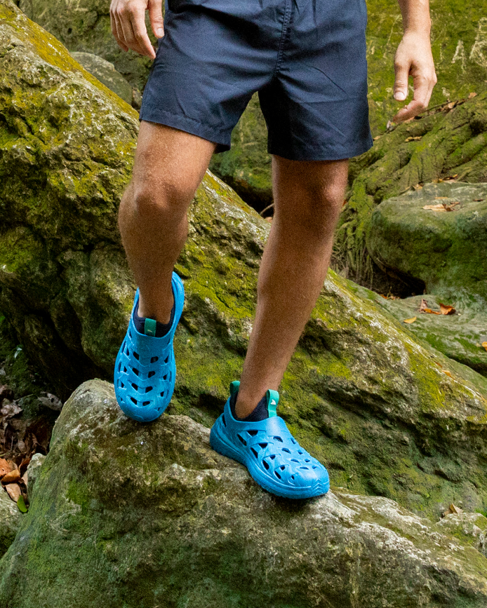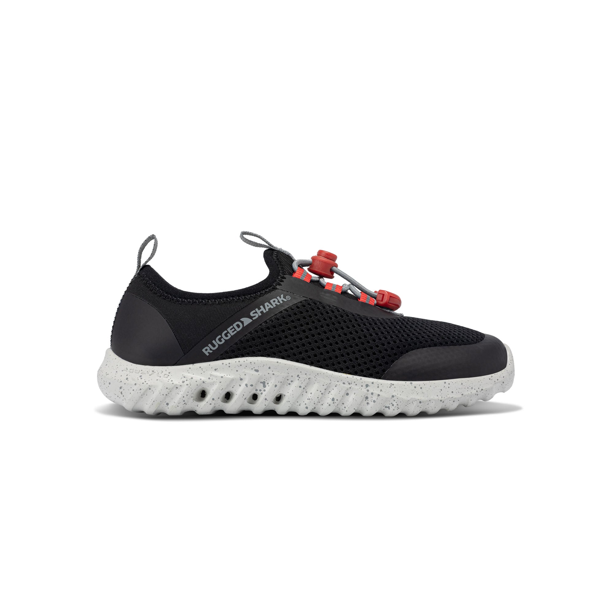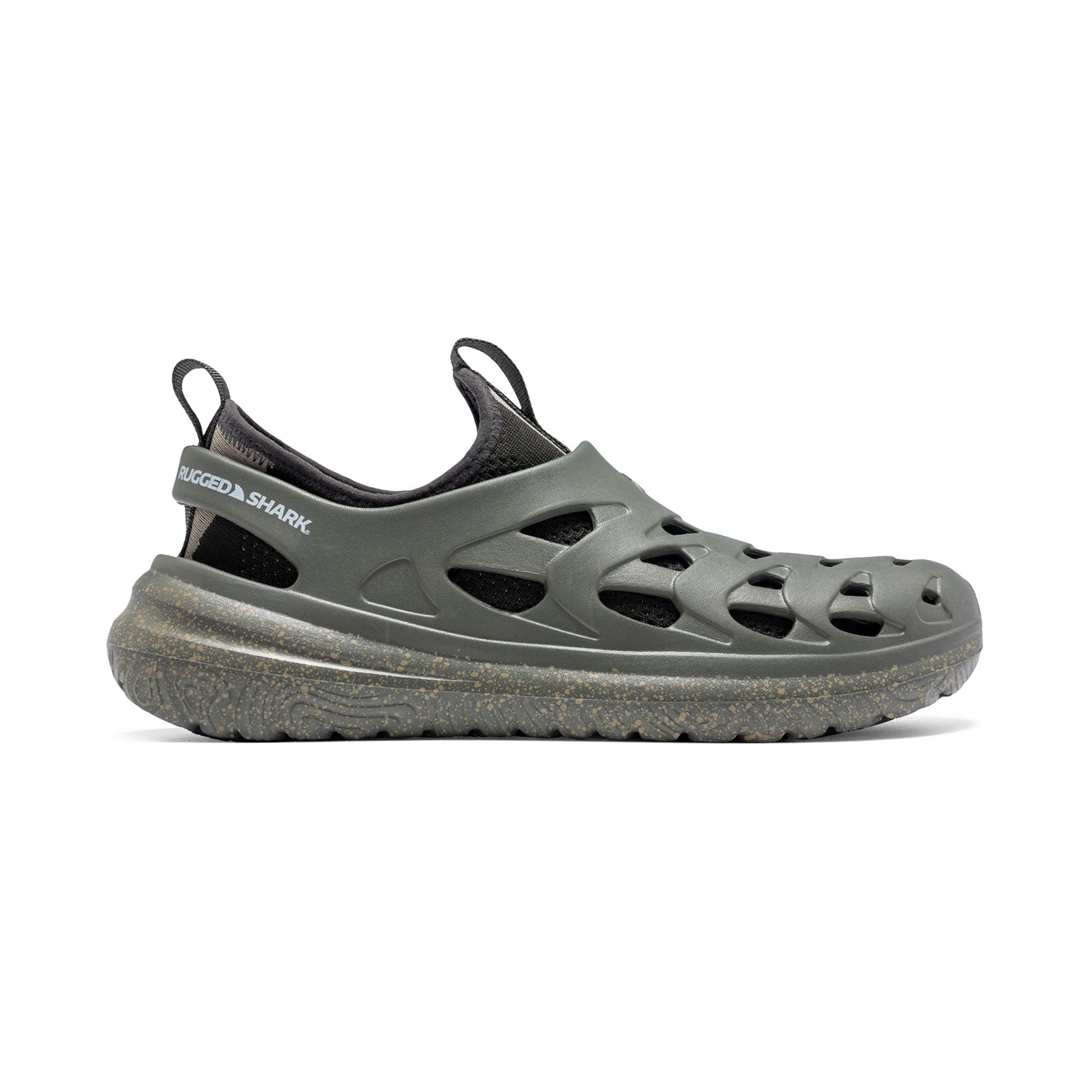 The Rugged Shark Rift slip-ons are perfect for both water and recovery, featuring quick-drying, lightweight EVA construction, a textured footbed, and AQUAFLO® Drainage Technology.