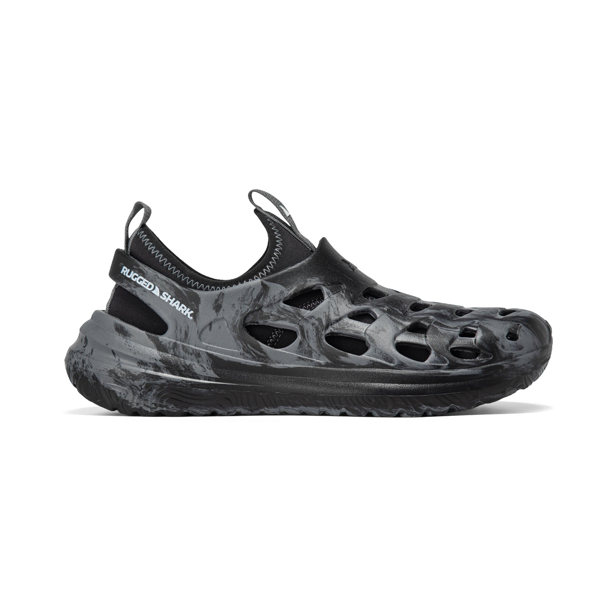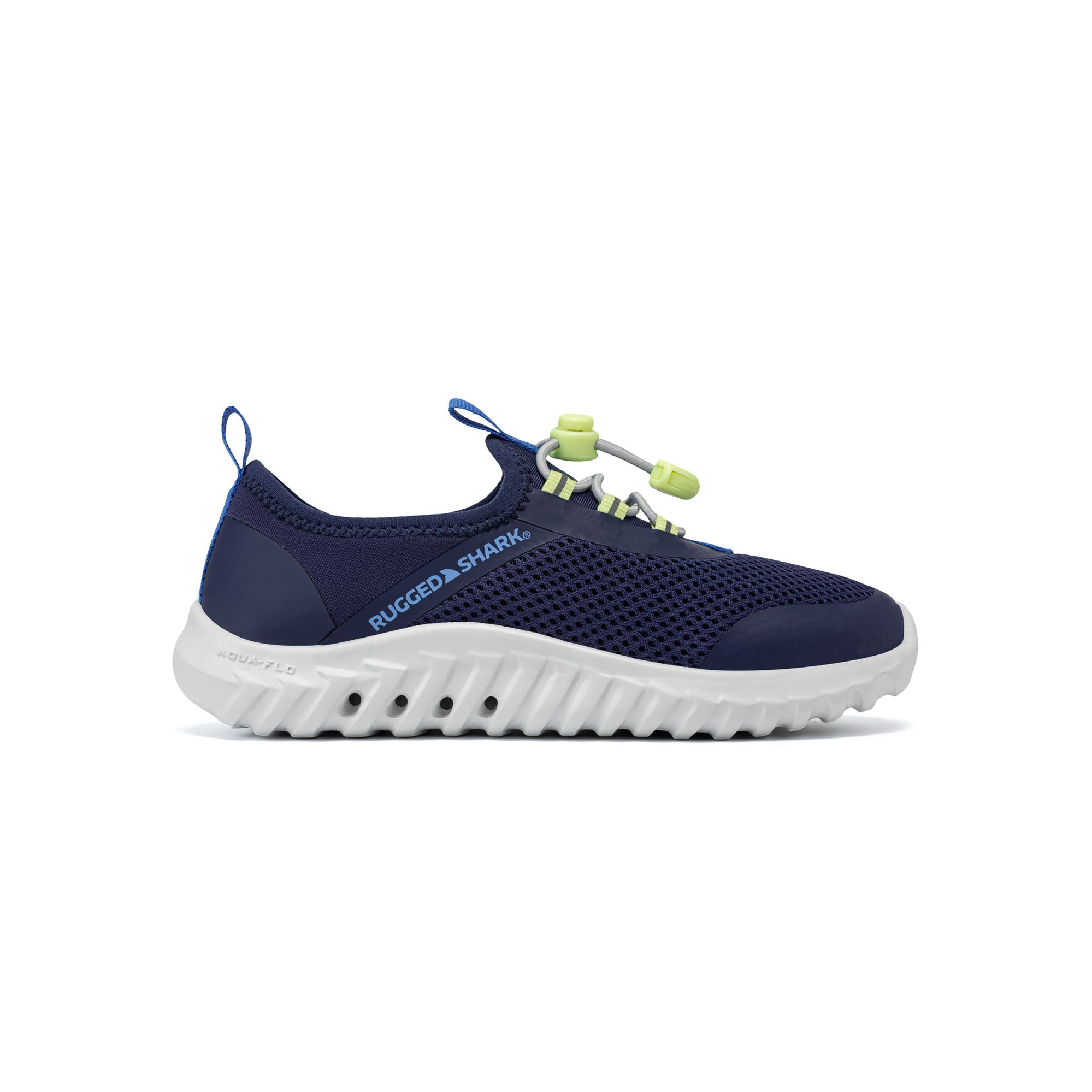 Rugged Sharks proprietary drainage system that allows you to seamlessly transition from water to land.