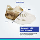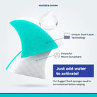 Just add water to activate the cleaning power. The white side lifts dirt and scuffs from rubber soles and textured surfaces. Flip to the teal shammy side to wipe away residue and reveal a refreshed finish.